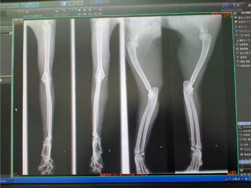 触診ではよくわからなかったため、レントゲンも撮ってもらいました。