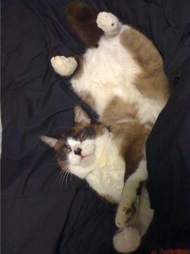 レンが1週間ほど前に近所の茶ニャーとケンカして右前脚をガブされました。