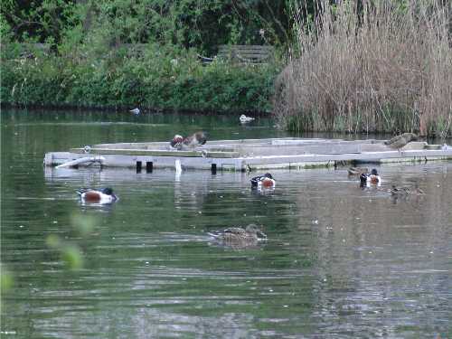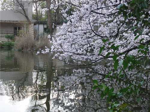 ここの桜の枝は池に向かって伸びてます。