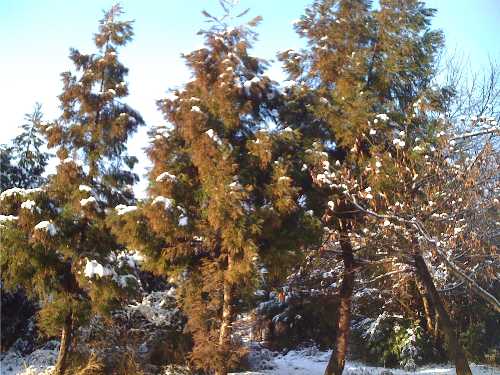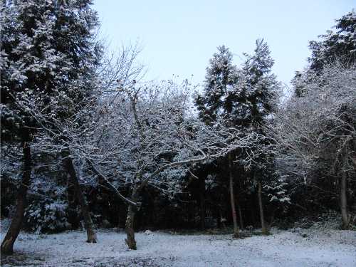 日中の熱で、雪が解け始めて、樹々からガサーと落ちる音がそこかしこでしてます。
