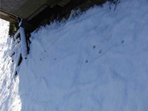 草薮へ戻ったら、家の周りを反対側に足跡が続いているではありませんか。