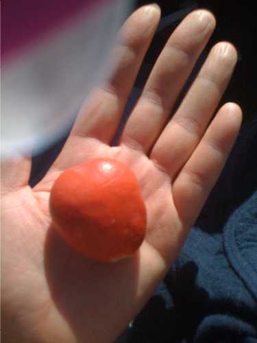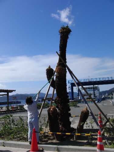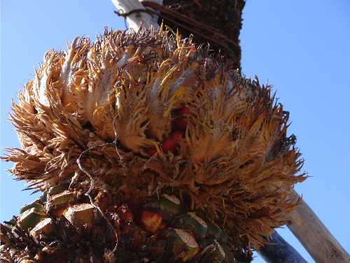黄色のフワフワの間にチラ見できる赤いのが蘇鉄の実です。