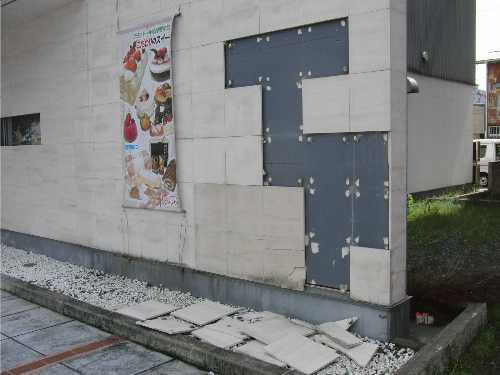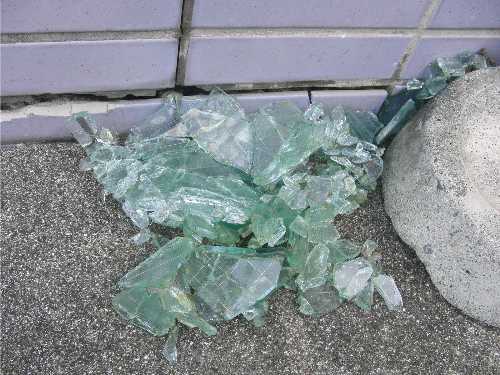 車のフロントガラス!!?と思ったら、7階建てのビルの5階の窓が割れてました。