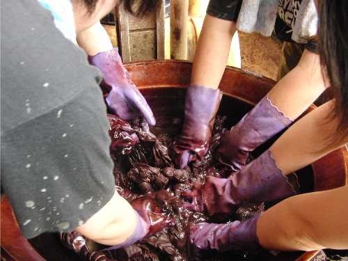 車輪梅を煮出した液で何度も染めます