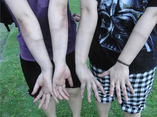 水でガシガシ洗っても色素が完全には落ちませんでした。
