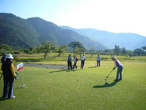 紬従事者によるグランドゴルフ大会がマングローブパーク(車で1時間)で開かれました。