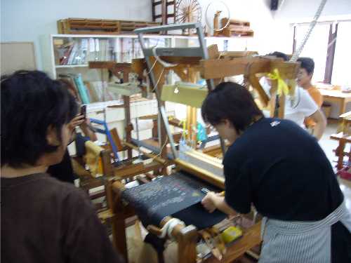 先週末、隣の機の方にキレイに織るコツをおしえてもらっていました。