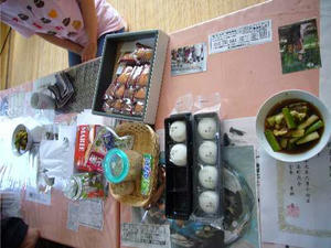 今日のおやつ:フィナンシェ2種、キュウリのお漬け物、かるかん、マリー(クッキー)