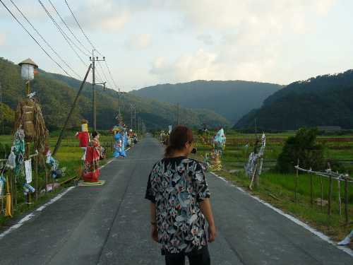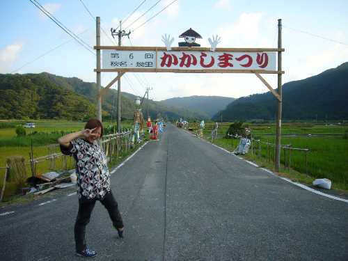 学校が終わってから、龍郷で行われている「かかしまつり」を見に行きました。