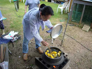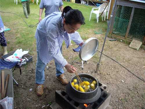 トウモロコシは釜で茹でました