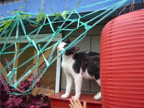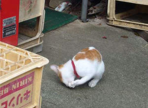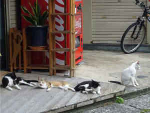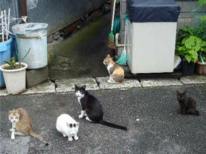 猫をなでていたら、近くを通った小学生の女の子も一緒に触りはじめました。