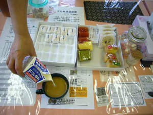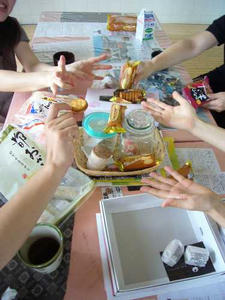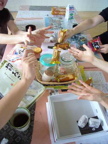 今日のおやつ:中国製のクラッカー、ちびドーナッツ、煎餅、ミキアイス
