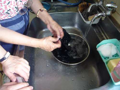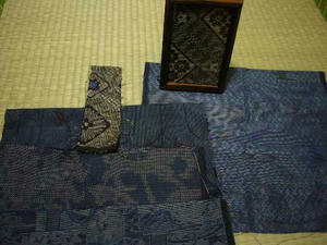 化学染料で染めたものには糊がたっぷり付いていてパリパリな状態でしたので、湯のしをさっそくしました。でないと、布が喰われるそうです、虫に。