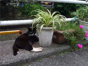 通学路沿いに居る猫たちはいつも素っ気ないのですが、今日は黒いコがすりよってきてくれました!