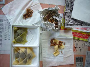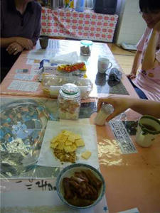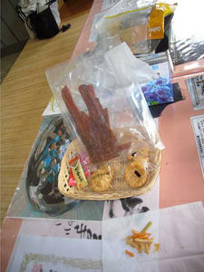 今日のおやつ:韓国製豚ジャーキー(甘い)、クッキー、煎餅…