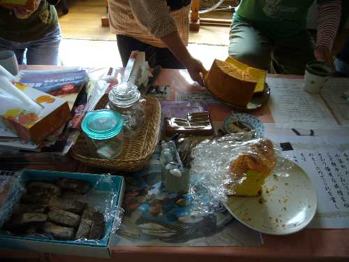 かしゃ餅(先生作)、チョコレートのパウンドケーキ(先輩の義父様作)