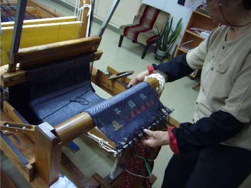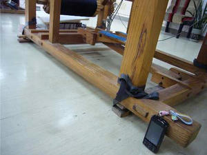 それでも脚にバッタンと呼ばれる筬がはめこんである部分が当るため、がに股姿勢で作業を行っていました。