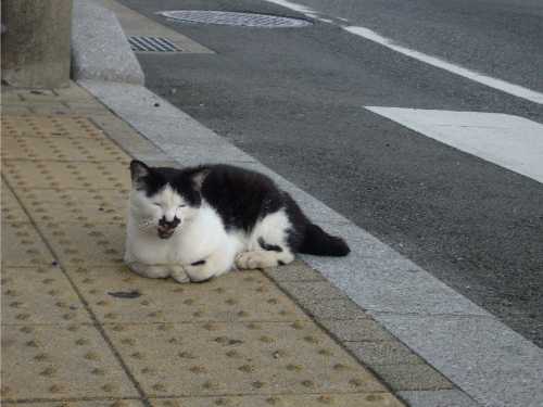 横断歩道の端にふてぶてしい猫が。